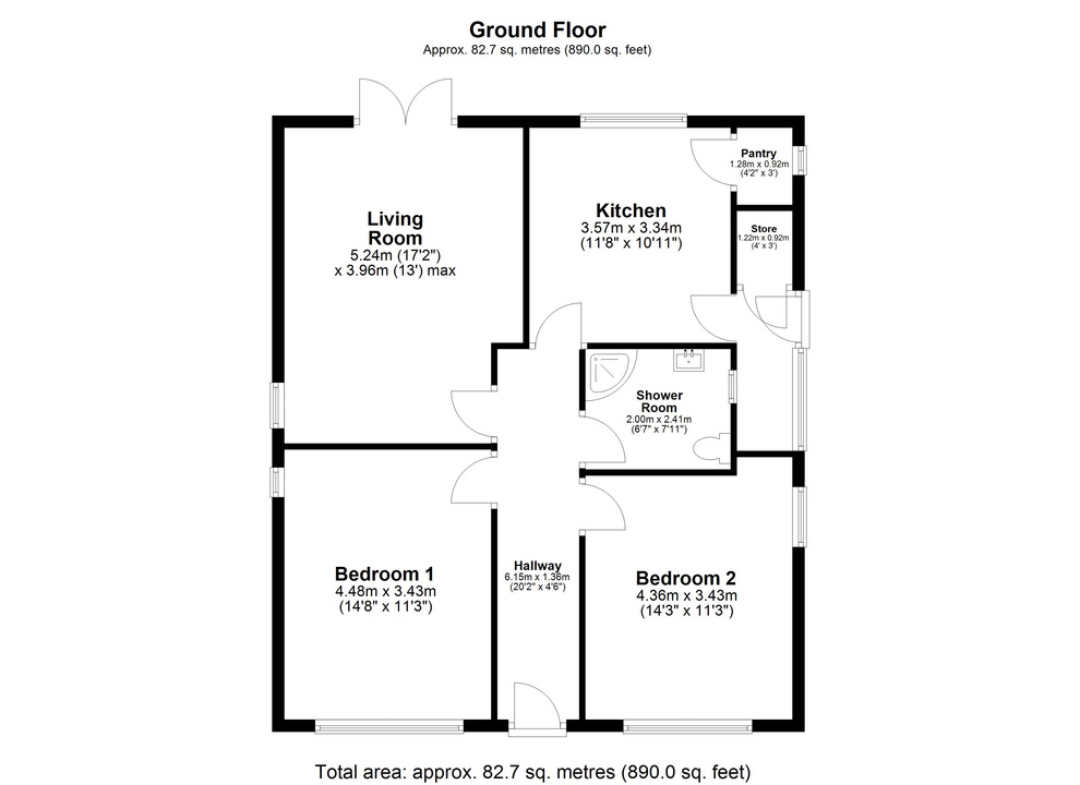 Accommodation includes a bright and comfortable living room with French doors leading off to the rear patio area, and two generously sized double bedrooms, each offering plenty of space and versatility. The home also benefits from partial new double glazing, ensuring comfort and efficiency.