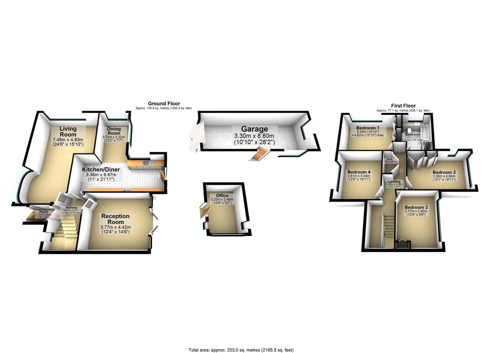 Upstairs, a central landing leads to four well-proportioned double bedrooms all well presented and ideal for family living. The floor is completed by a modern family bathroom fitted with a white four-piece suite and contemporary tiling.