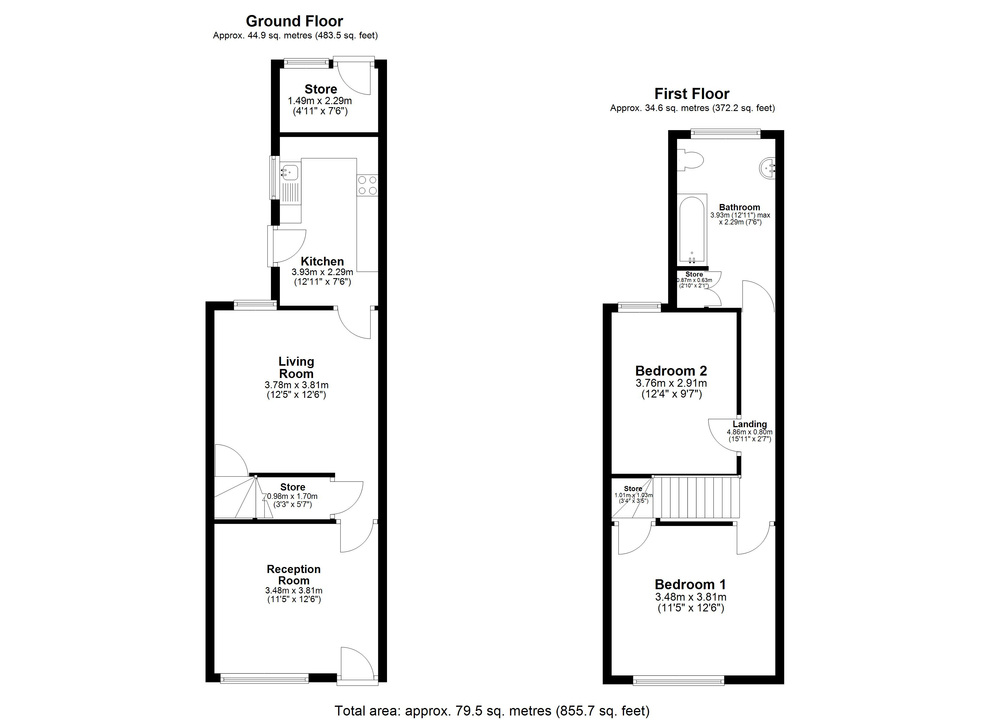 • Living Room: 3.78m x 3.81m (12’5” x 12’6”)